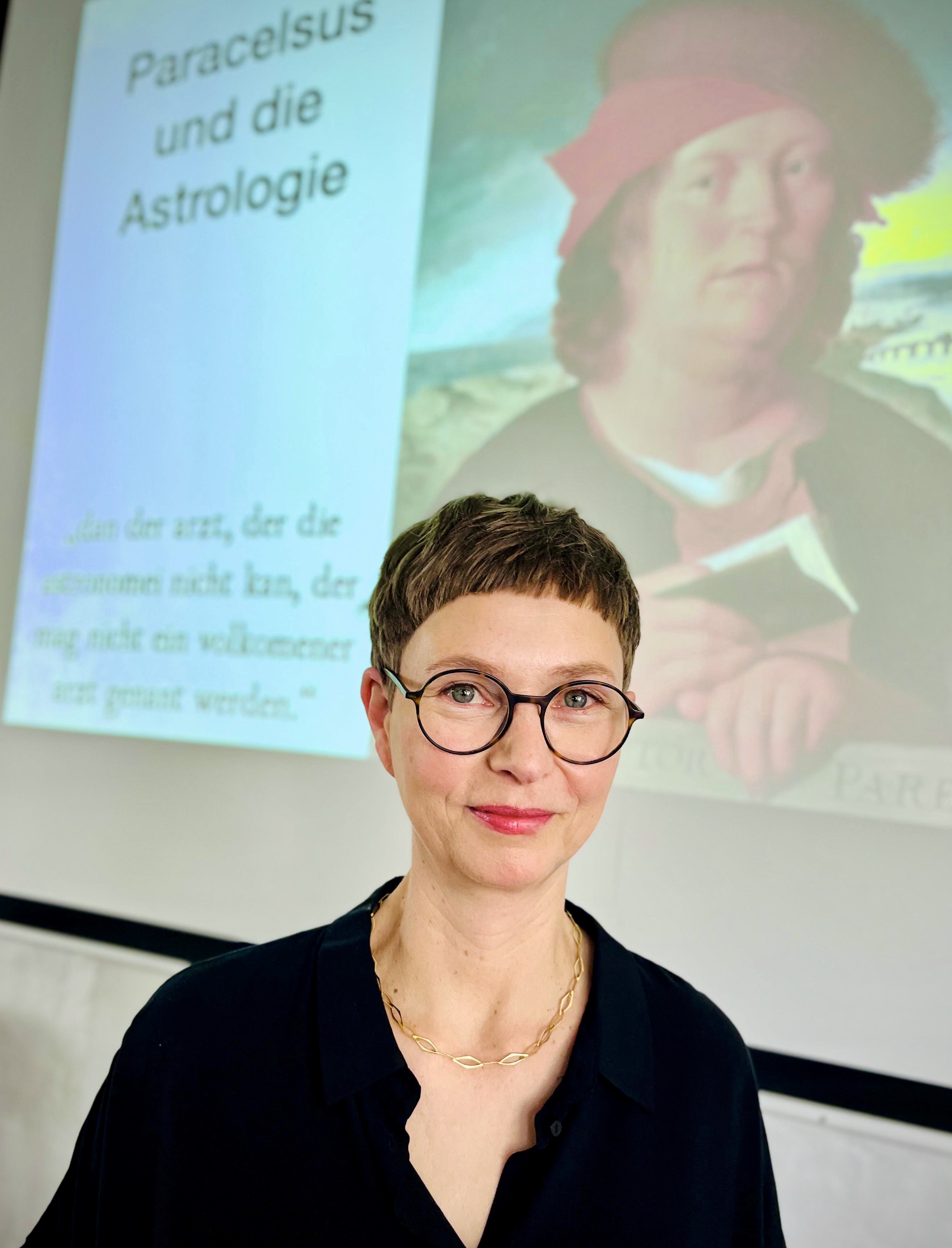 Der Tag begann mit einem Vortrag, in dem ich die Ergebnisse meiner Untersuchungen zur Anwendung und zum Verständnis der Astrologie bei Paracelsus vorstellte. Die größten Überraschungen waren für mich, dass Paracelsus die Geburtsastrologie strikt ablehnte – und dass er mit seinen Forderungen nach Reformen in Diagnostik und Therapie maßgeblich dazu beitrug, dass die Astrologie an den Universitäten an Bedeutung verlor. Mein Vortrag erklärte die Hintergründe dieser Entwicklung und zeigte auf, inwiefern Paracelsus dennoch die Astrologie als unverzichtbare Säule der Medizin betrachtete.